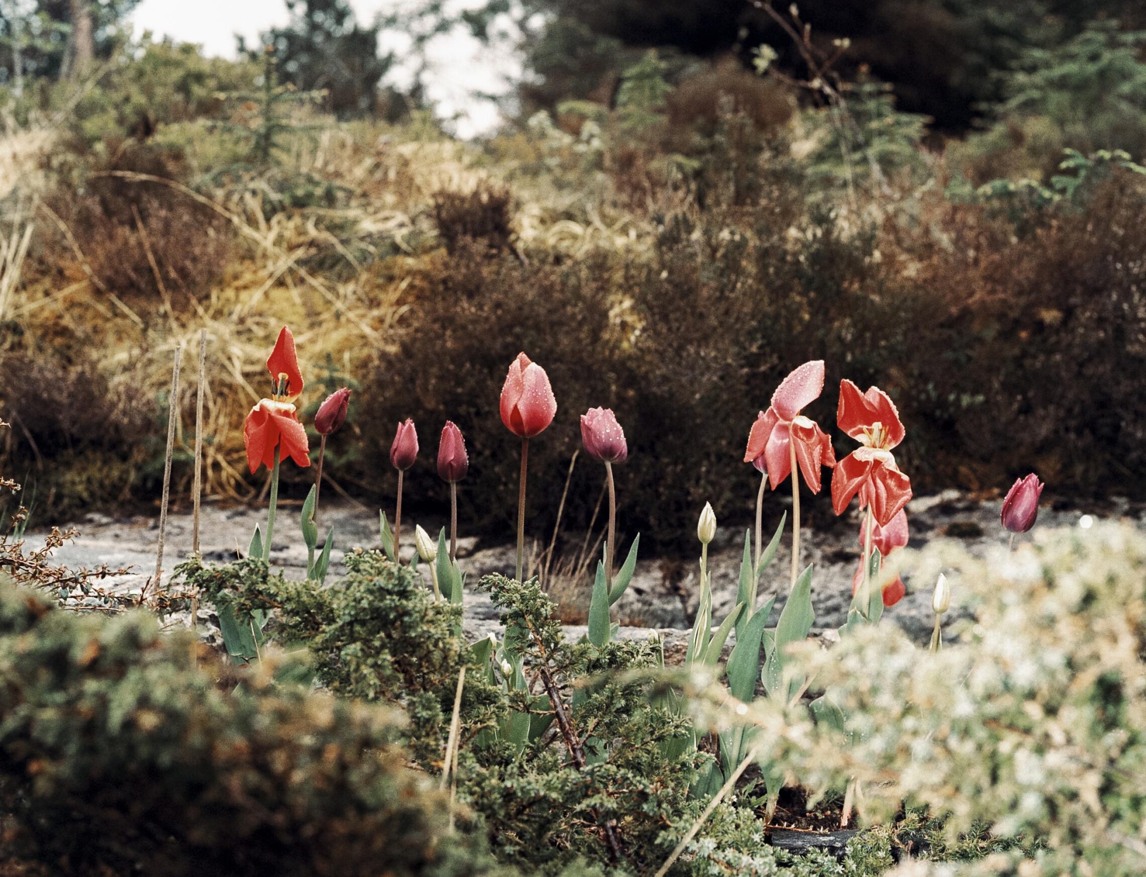 Mamma sine tulipanar. Med godt mot har ho planta dei i håp om at dei overlever veret.